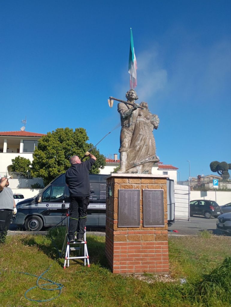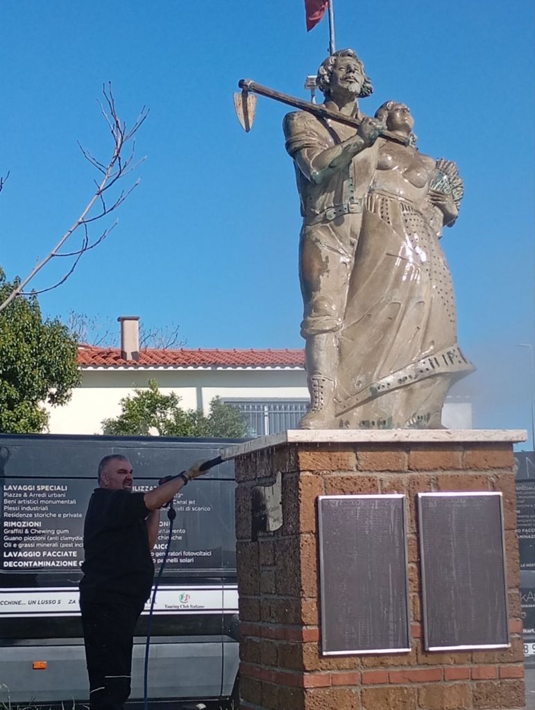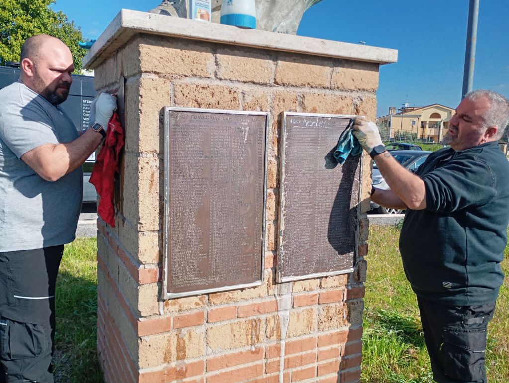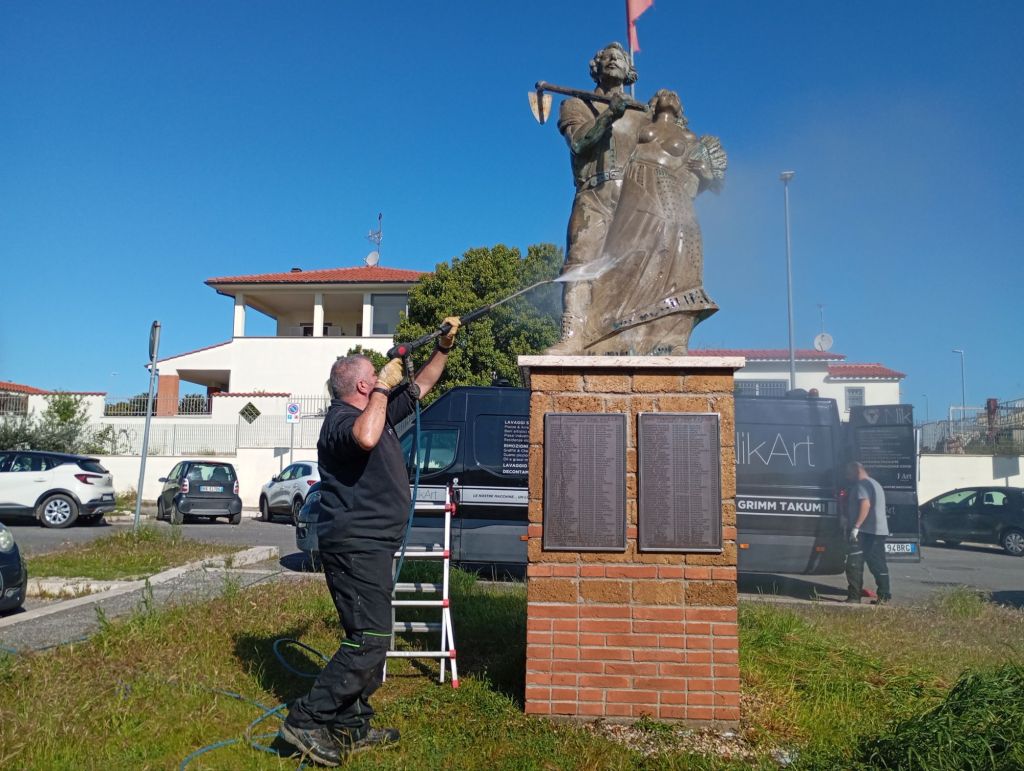Si è svolta martedì 25 marzo mattina la pulizia della statua dei fondatori e della targa di largo Scapoli a Villaggio Prenestino.
