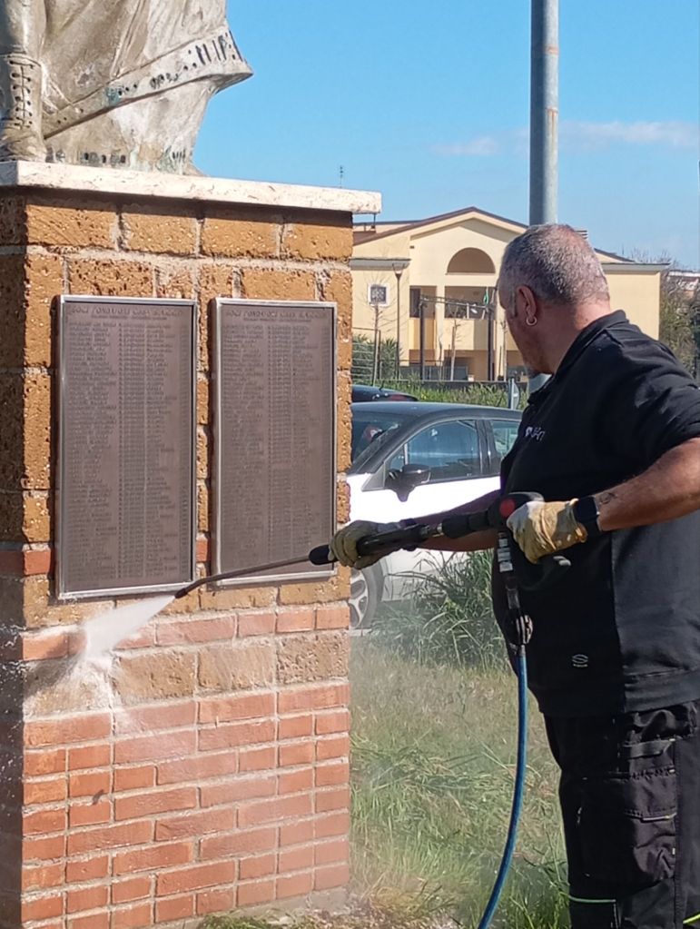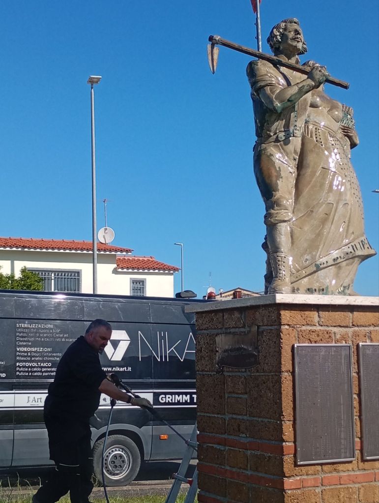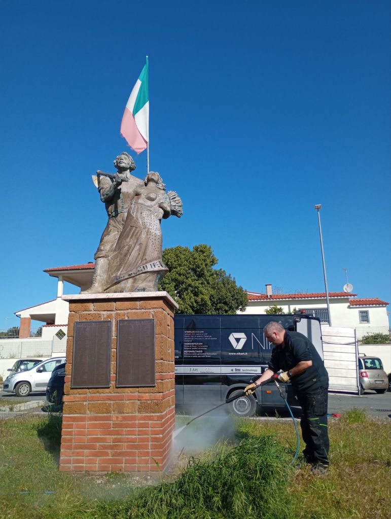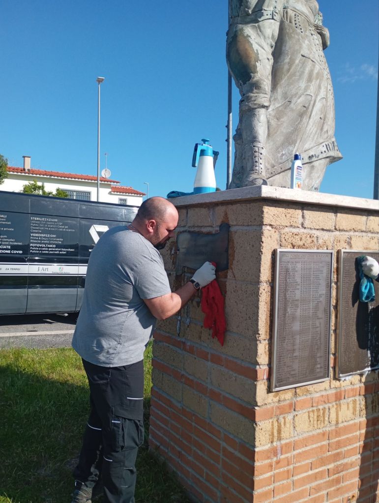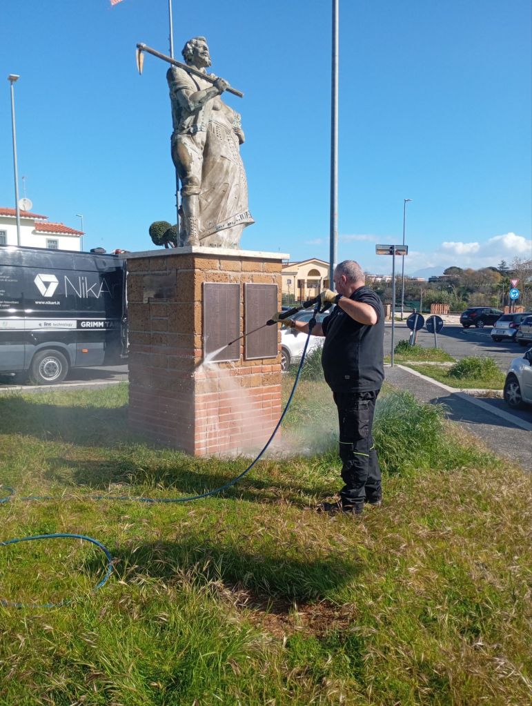 Si è svolta martedì 25 marzo mattina la pulizia della statua dei fondatori e della targa di largo Scapoli a Villaggio Prenestino.
